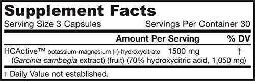 Jarrow Formulas HC-active is a 70% concentrate of hydroxycitric acid (HCA) stabilized as a potassium-magnesium salt extracted from the fruit of garcinia cambogia